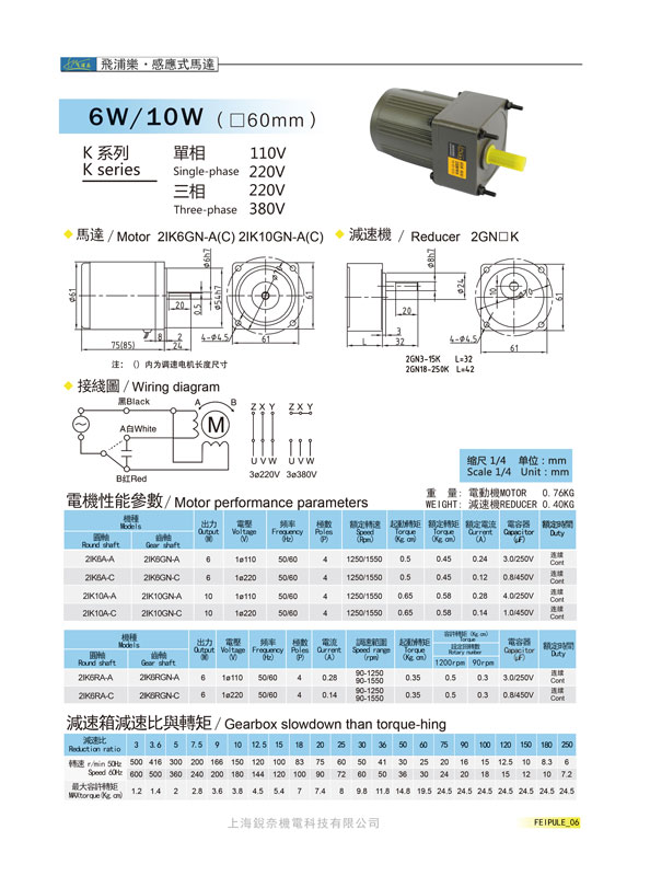 K系列2GN10K感應式馬達6W/10W(60mm)