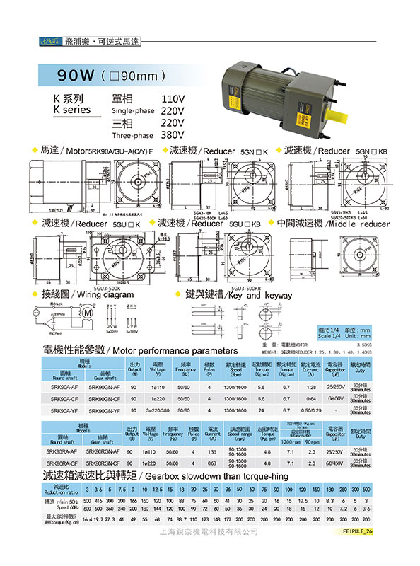 K系列5GN30K可逆式馬達90W(90mm)