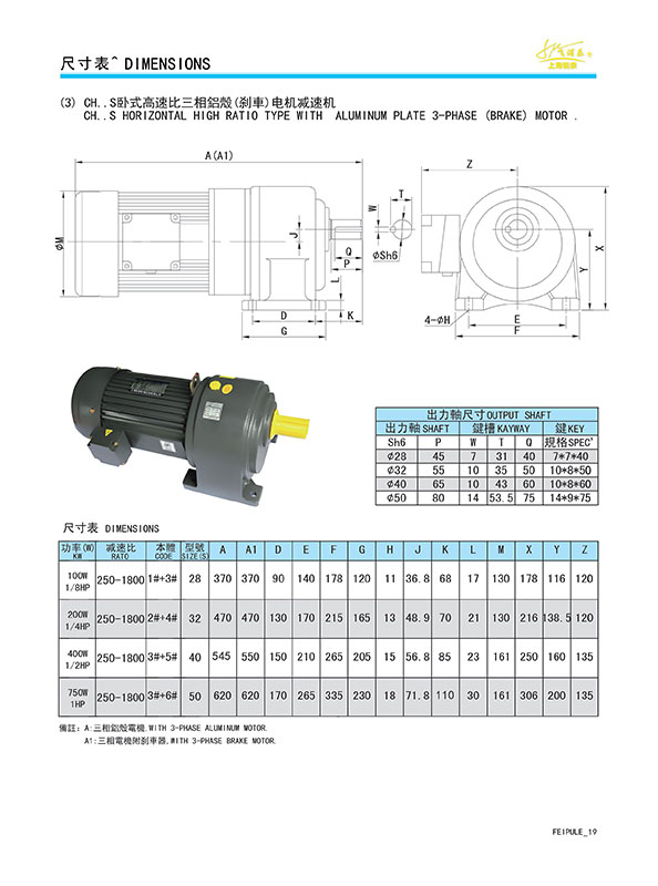 CH..S 臥式三相鋁/鐵殼(剎車)電機減速機