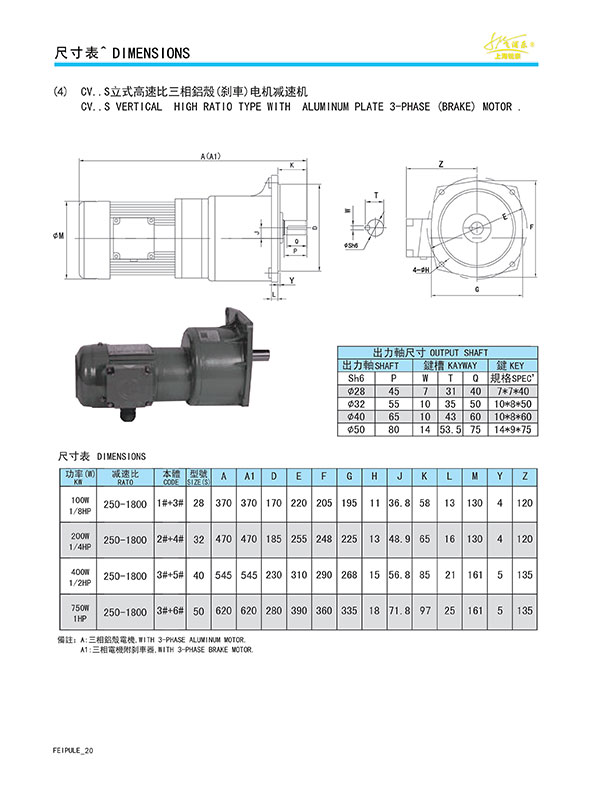 CV..S 立式三相鋁/鐵殼(剎車)電機減速機