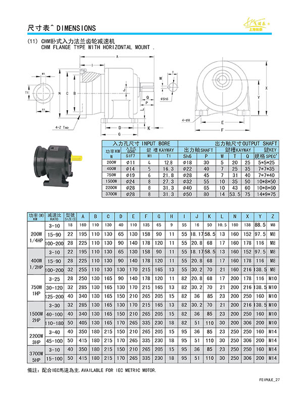 CHM 臥式入力法蘭齒輪減速機